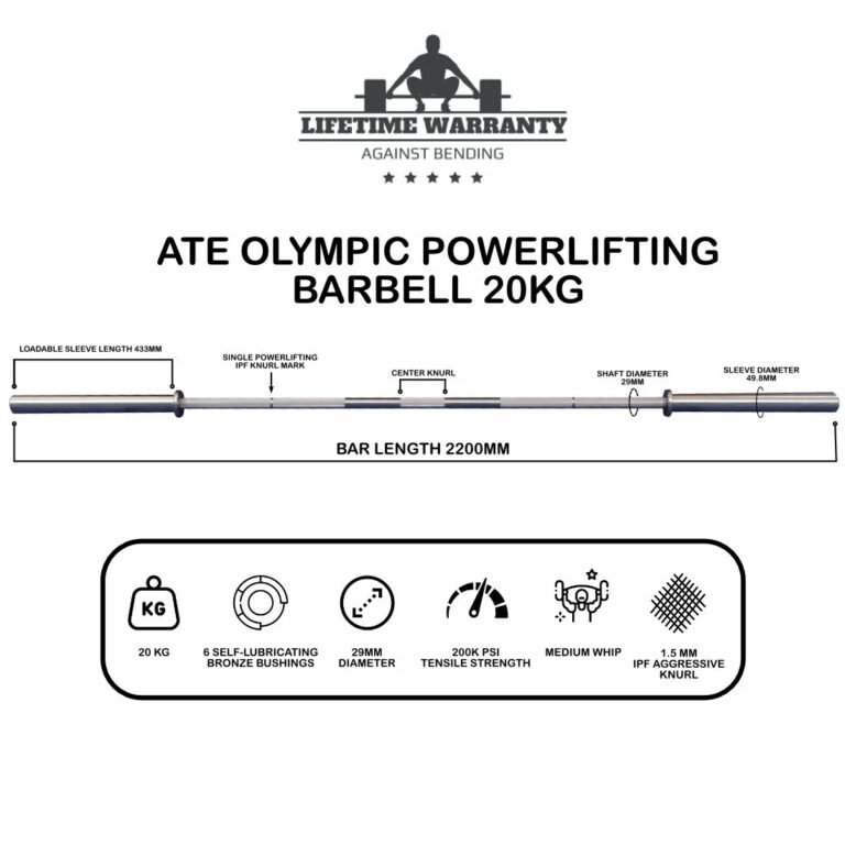 Powerlifting Barbell 20kg Stainless Steel (IPF Specifications)
