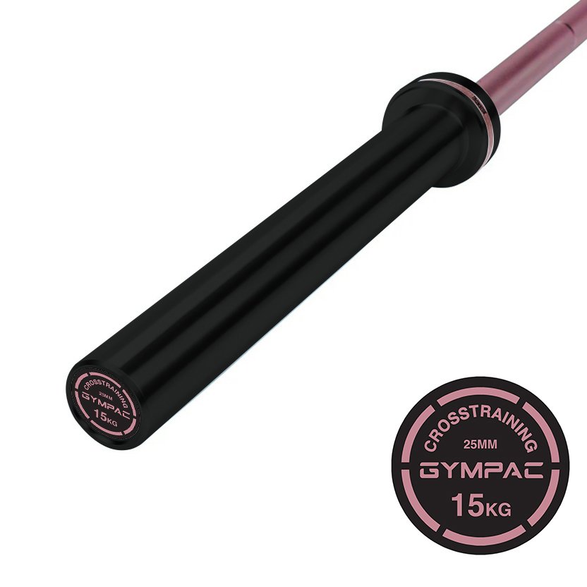 Gympac Women's Bar 15kg, QPQ sleeve and  cerakote coated grip for a better feel and longer life. Ideal for cross training and weightlifting for professional use. Thanks to its 216K Tensile Strength, this bar boasts exceptional flexibility and efficient rebound under heavy loads. 8 needle bearings, guaranteed 10,000 drops. Material: Spring steel. Coating cerakote grip and QPQ sleeves. Key Features: -- Shaft Material: Spring Steel -- Tensile Strength: 216,000 psi -- Yield Strength: 206,900 psi -- Capacity: 680.3 kg (1,500lb) -- Rotational System: Needle Bearing x 8 -- Weight: 15kg -- Bar Length: 2010mm -- Shaft Diameter: 25mm -- Sleeve Diameter: 50mm -- Sleeve Length: 320mm -- Shaft Coating: Cerakote coated -- Sleeve Coating: QPQ -- Knurl Pattern: IWF Compliant