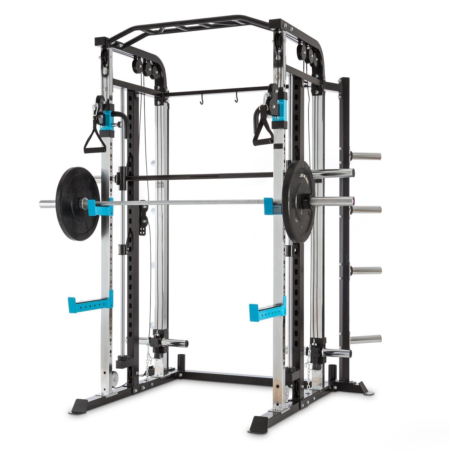 GS03 Tesiro Sports Deluxe Smith Machine is an ideal blend of a Smith Machine and a Squat/Half Rack, allowing for training with both loose weights and the stability of fixed weights within the Smith Machine. Its heavy steel construction and smooth guide rods ensure optimal training performance and safety.