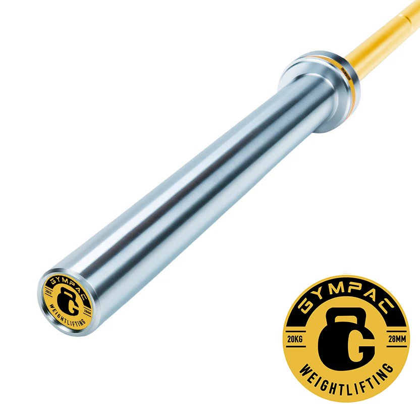 The Gympac Olympic 7ft barbell, loaded with 4 brass bushes is a heavy duty bar, rated to 700lb. With 50mm diameter free-rotating sleeves, it's compatible with any Olympic plates and features a heavy nickel plate finish. It comes securely packaged in a polybag, within a sturdy cardboard tube, and is supplied with a pair of spring collars. Specifications: Bar Weight: 20kg Weight Rating: 700lbs Length: 2200mm Shaft Diameter: 30mm Sleeve length: 445mm Sleeve diameter: 49.5 – 50.5mm Shaft material: Carbon steel Shaft Coating: Nickel Plated Shaft length (b/w sleeves): 1300mm Sleeve material: Nickel Plate Knurling: Fine, grippy 4 brass bushes Supplied with spring collars