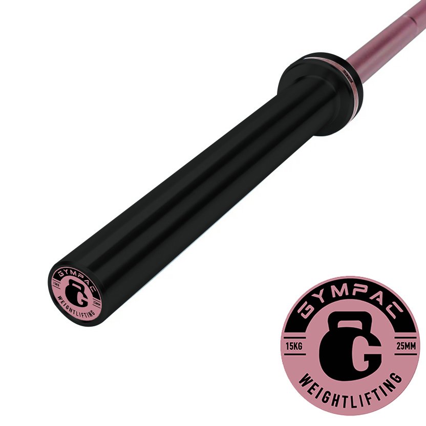 Gympac Women's Bar 15kg, hard chrome sleeve and cerakote coated grip for a better feel and longer life. Ideal for cross training and weightlifting for professional use. Thanks to its 216K Tensile Strength, this bar boasts exceptional flexibility and efficient rebound under heavy loads. 8 needle bearings, guaranteed 10,000 drops. Material: Spring steel. Coating cerakote grip and Hard Chrome sleeves. Key Features: -- Shaft Material: Spring Steel -- Tensile Strength: 216,000 psi -- Yield Strength: 206,900 psi -- Capacity:680.3 kg (1,500lb) -- Rotational System: Needle Bearing x 8 -- Weight:15kg -- Bar Length: 2010mm -- Shaft Diameter: 25mm -- Sleeve Diameter: 50mm -- Sleeve Length: 320mm -- Shaft Coating: Cerakote coated -- Sleeve Coating: Hard Chrome -- Knurl Pattern: IWF Compliant