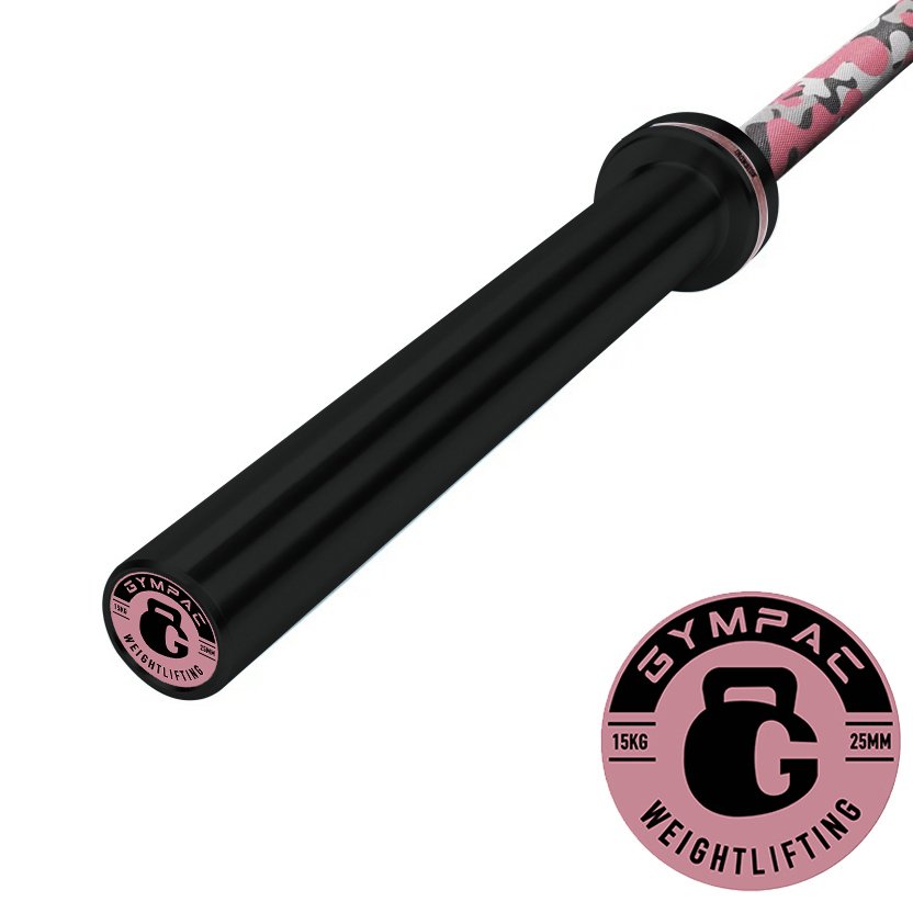 Gympac Women's barbell built for Olympic weightlifting, powerlifting, high intensity high rep training, and much more. Medium knurl provides a full, not sharp pattern allowing the lifter to decide their ideal grip. 190,000 PSI tensile strength gives the right amount of whip or flex to the bar for Olympic lifts. Dual knurl marks allows use for multiple lifts on and off your Rack. Key Features: -- Shaft Material: Alloy Steel -- Tensile Strength: 190,000 psi -- Capacity: 454 kg (1,000lb) -- Rotational System: Needle Bearing x 4 -- Weight: 15kg -- Bar Length: 2010mm -- Shaft Diameter: 25mm -- Sleeve Diameter: 50mm -- Sleeve Length: 320mm -- Shaft Coating: Cerakote coated -- Sleeve Coating: Hard Chrome -- Knurl Pattern: IWF Compliant