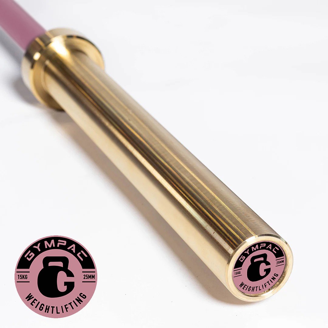 Gympac Women's barbell built for Olympic weightlifting, powerlifting, high intensity high rep training, and much more. Medium knurl provides a full, not sharp pattern allowing the lifter to decide their ideal grip. 190,000 PSI tensile strength gives the right amount of whip or flex to the bar for Olympic lifts. Dual knurl marks allows use for multiple lifts on and off your Rack. Key Features: -- Shaft Material: Alloy Steel -- Tensile Strength: 190,000 psi -- Capacity: 454 kg (1,000lb) -- Rotational System: Needle Bearing x 4 -- Weight: 15kg -- Bar Length: 2010mm -- Shaft Diameter: 25mm -- Sleeve Diameter: 50mm -- Sleeve Length: 320mm -- Shaft Coating: Cerakote coated -- Sleeve Coating: QPQ -- Knurl Pattern: IWF Compliant