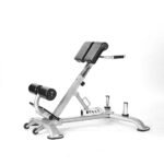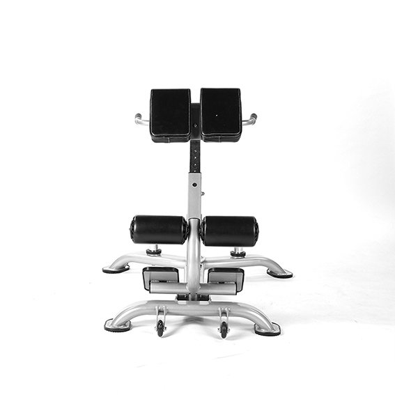 Commercial Hyper Extension Machine is adjustable up to six angles and features fully adjustable thigh pads. It also includes rear transport wheels for easy mobility.