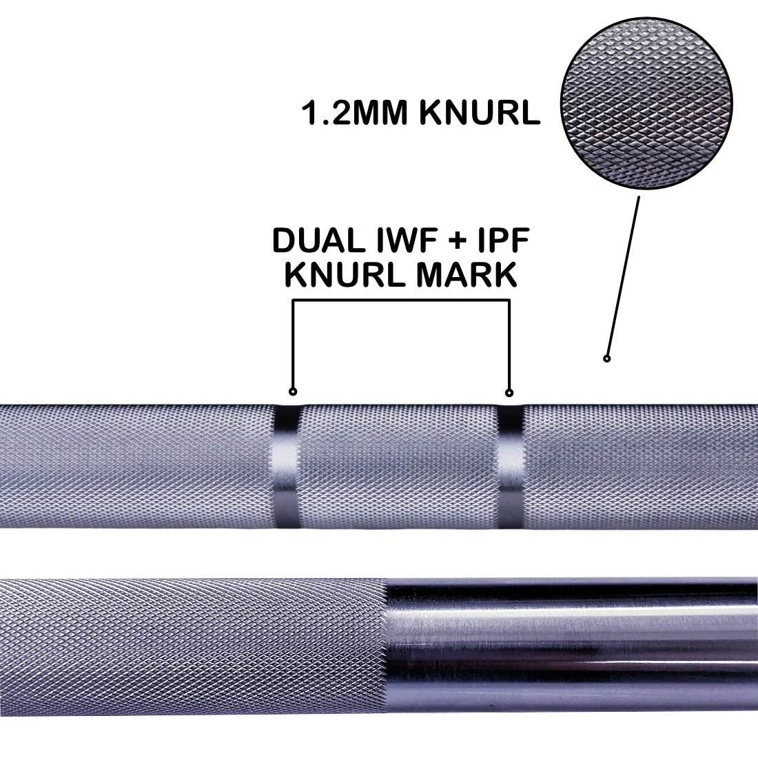 • Dual International Weightlifting + Powerlifting Knurl Marks