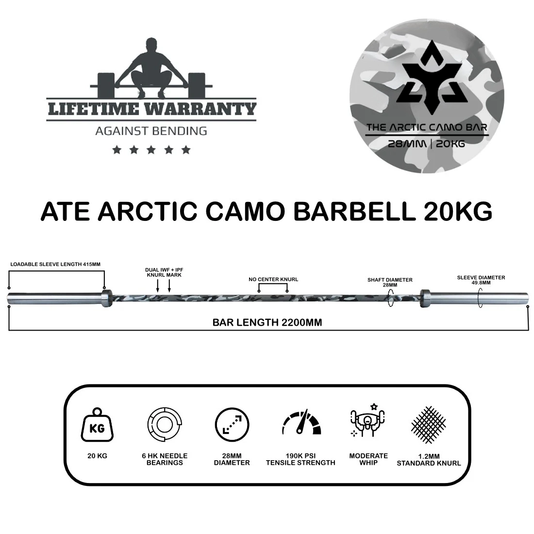 Olympic Barbell Weightlifting Arctic Camo Bar 20kg (Cerakote Camo)