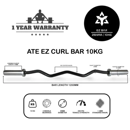 The curved shaft of the ATE EZ Curl Bar helps to reduce strain on the wrists during curls. If you love training arms, ATE EZ Curl Bar (Black Oxide/Chrome) is specifically designed for you, to target and isolate the biceps, triceps and forearm muscles.