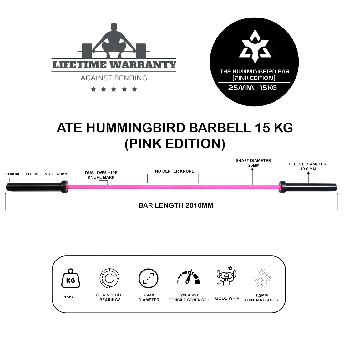 Olympic Barbell Weightlifting Hummingbird 15kg (Pink Edition)