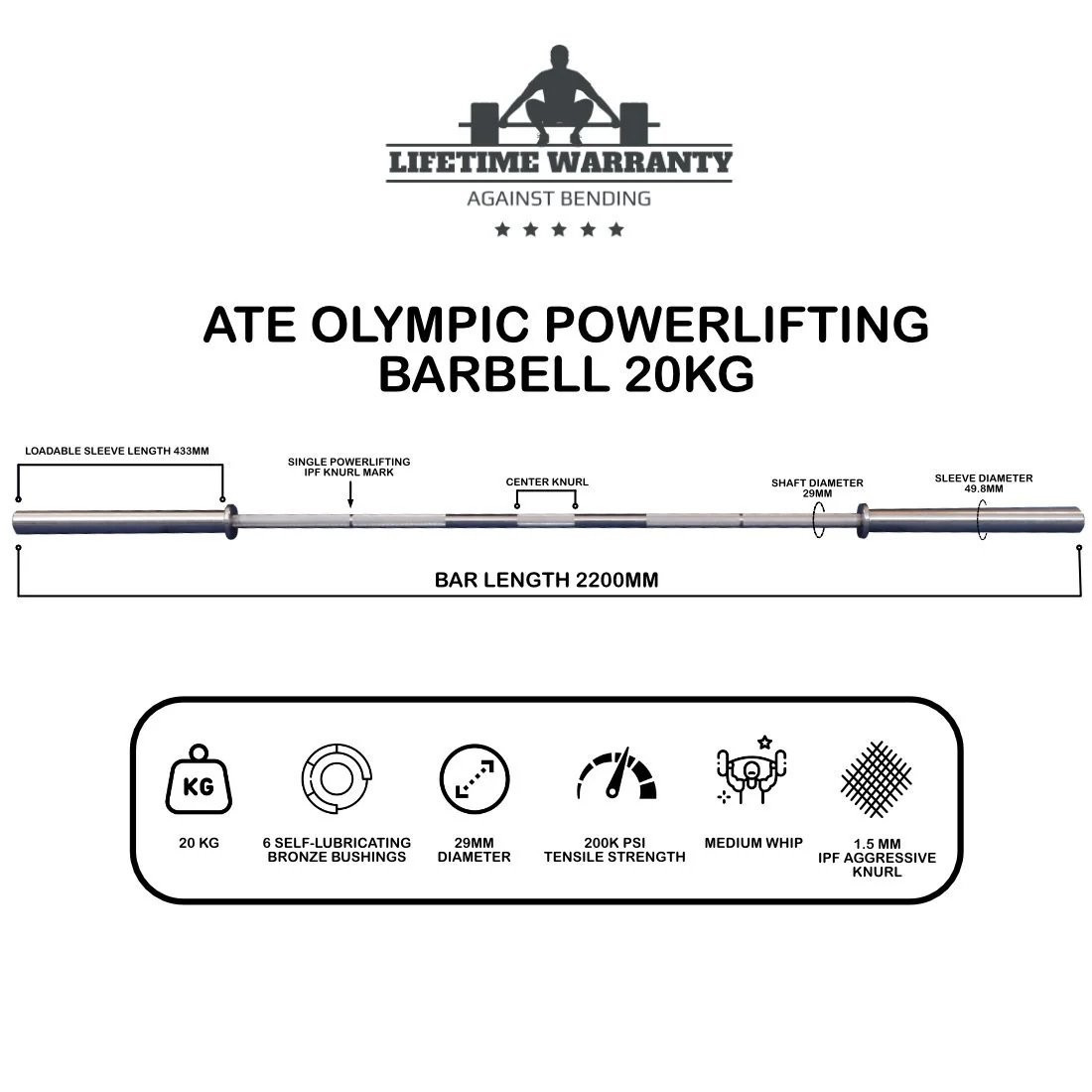 It comprises of the ATE unique ball bearing system with 2 Needle Ball Bearings for smooth rotation while lifting. This bar is our incredible deal for CrossFit boxes, Conventional gyms and Olympic weightlifting gyms.