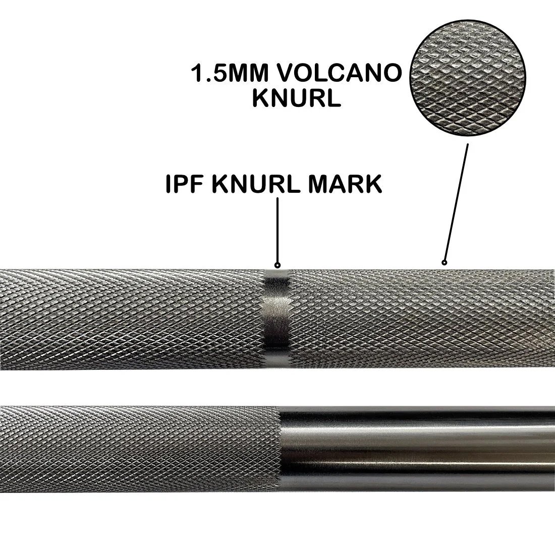 The 1.5mm Volcano Knurl with the IPF knurl mark makes the TESIRO Powerlifting Barbell suitable for all national competitions and training. It comprises of the TESIRO signature bushing system.