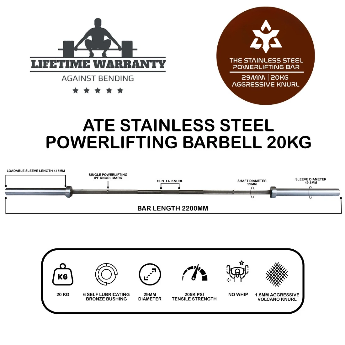 Powerlifting Barbell 20kg Stainless Steel (IPF Specifications)