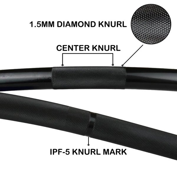 - Dual International Weightlifting + Powerlifting Knurl Marks