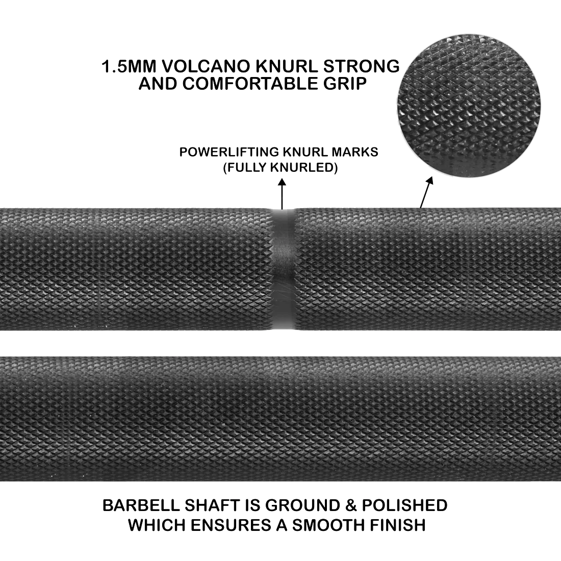- Dual International Weightlifting + Powerlifting Knurl Marks