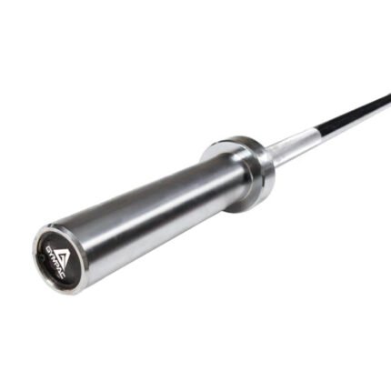 The Gympac Olympic 7ft barbell, loaded with 4 brass bushes is a heavy duty bar, rated to 700lb. With 50mm diameter free-rotating sleeves, it's compatible with any Olympic plates and features a heavy nickel plate finish. It comes securely packaged in a polybag, within a sturdy cardboard tube, and is supplied with a pair of spring collars. Specifications: Bar Weight: 20kg Weight Rating: 700lbs Length: 2200mm Shaft Diameter: 30mm Sleeve length: 445mm Sleeve diameter: 49.5 – 50.5mm Shaft material: Carbon steel Shaft Coating: Nickel Plated Shaft length (b/w sleeves): 1300mm Sleeve material: Nickel Plate Knurling: Fine, grippy 4 brass bushes Supplied with spring collars